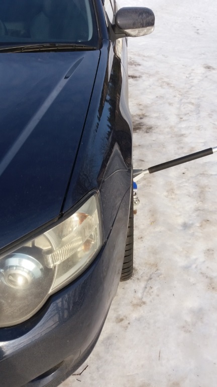 Onko Juhiss tuo auto tunkin varassa vai onks siul joku puupalikka vanteen alla?