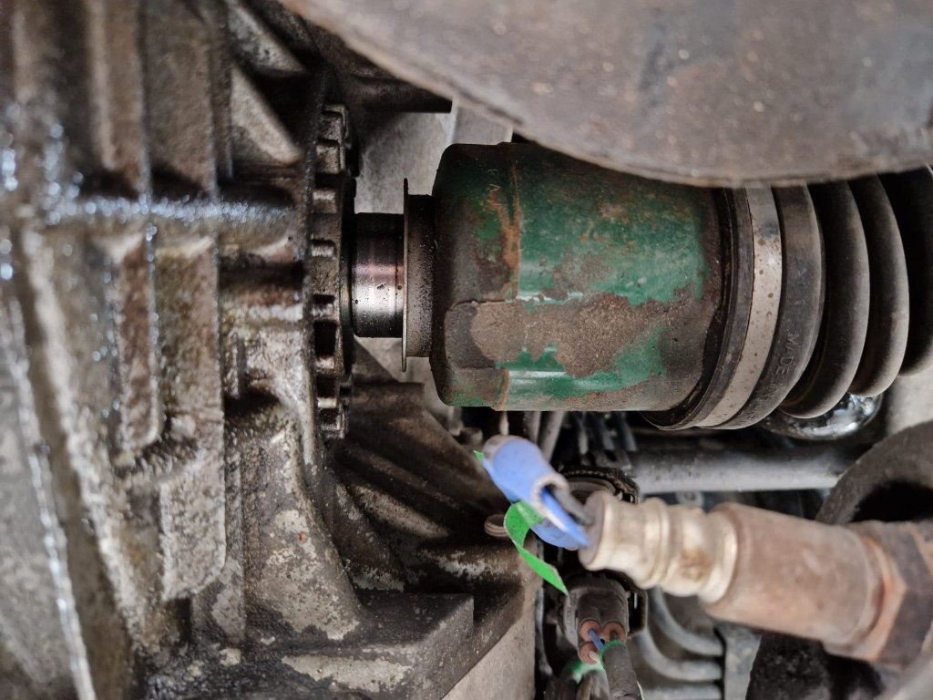 Oheinen yllätys tuli esiin autoa alta katsellessa.Sisempi vetoakselin nivel tullut ulos? Miten näin voi käydä?